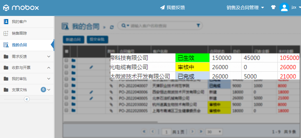 共好合同管理系統(tǒng),提供了基于合同類型的報(bào)表、基于合同狀態(tài)的報(bào)表、基于合同金額的報(bào)表、基于收付款計(jì)劃的報(bào)表、基于開票及收到發(fā)票的報(bào)表等等