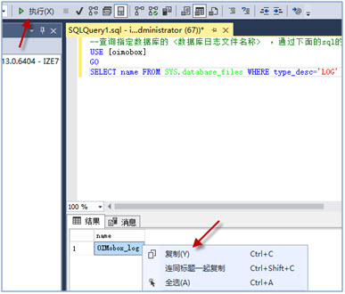 按腳本獲取到的 數(shù)據(jù)庫日志文件名稱 – 覆蓋; 及修改 數(shù)據(jù)庫名