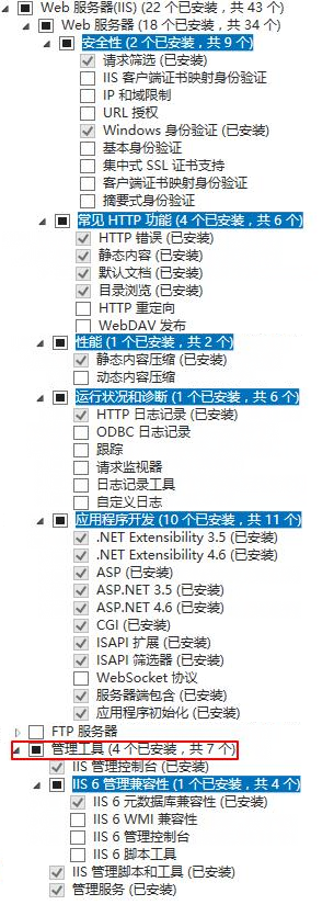 Internet Information Services 部署合同管理系統(tǒng)或項目管理系統(tǒng)的時候需要用到。因此必須在系統(tǒng)中選擇部署。一下截圖將 IIS所需的選項做了描述,大家部署前盡量參考截圖選項進行。(因為系統(tǒng)版本 有差異,或許我截圖中有的 ,在你的系統(tǒng)中沒有,這個也不要緊。有相似的都選上就可以)