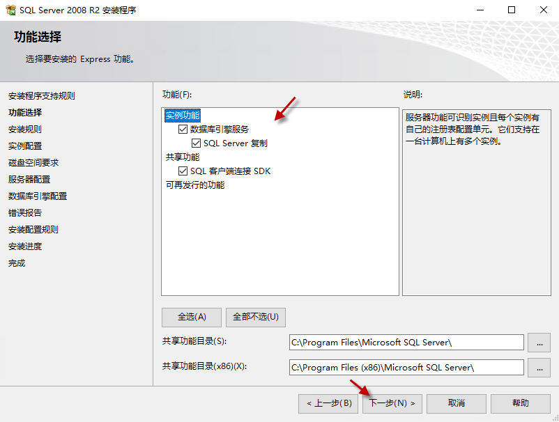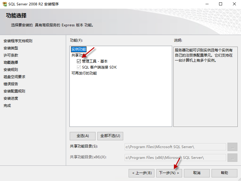 .Net Framework 3.5 環(huán)境是因為SQLServer 2008R2 用到,若自己已經(jīng)有SQLServer ,那么這個可以不選擇