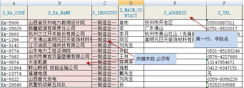 在導入過程中,我們先將企業(yè)的歷史客戶先輸入到excel表中,表的格式參考下圖