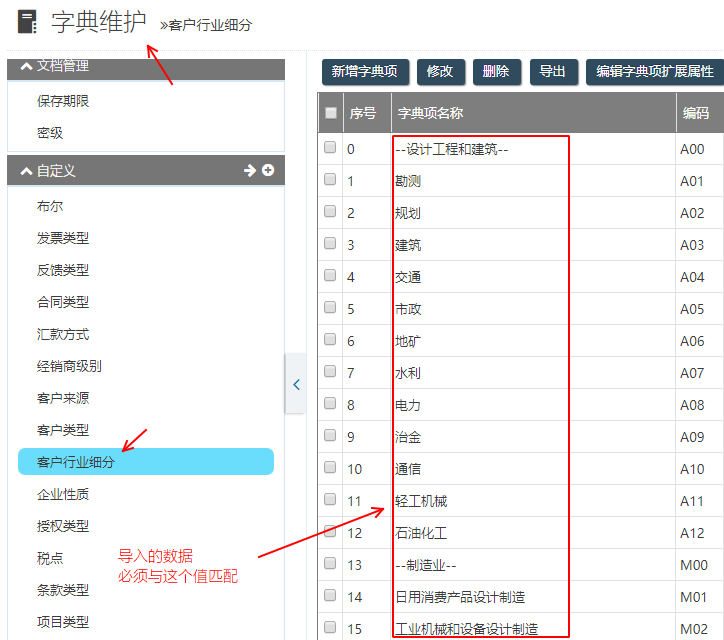 其中:S_INDUSTRY 字段,關聯(lián)的是系統(tǒng)定義的“數(shù)據(jù)字典”-“客戶行業(yè)細分”